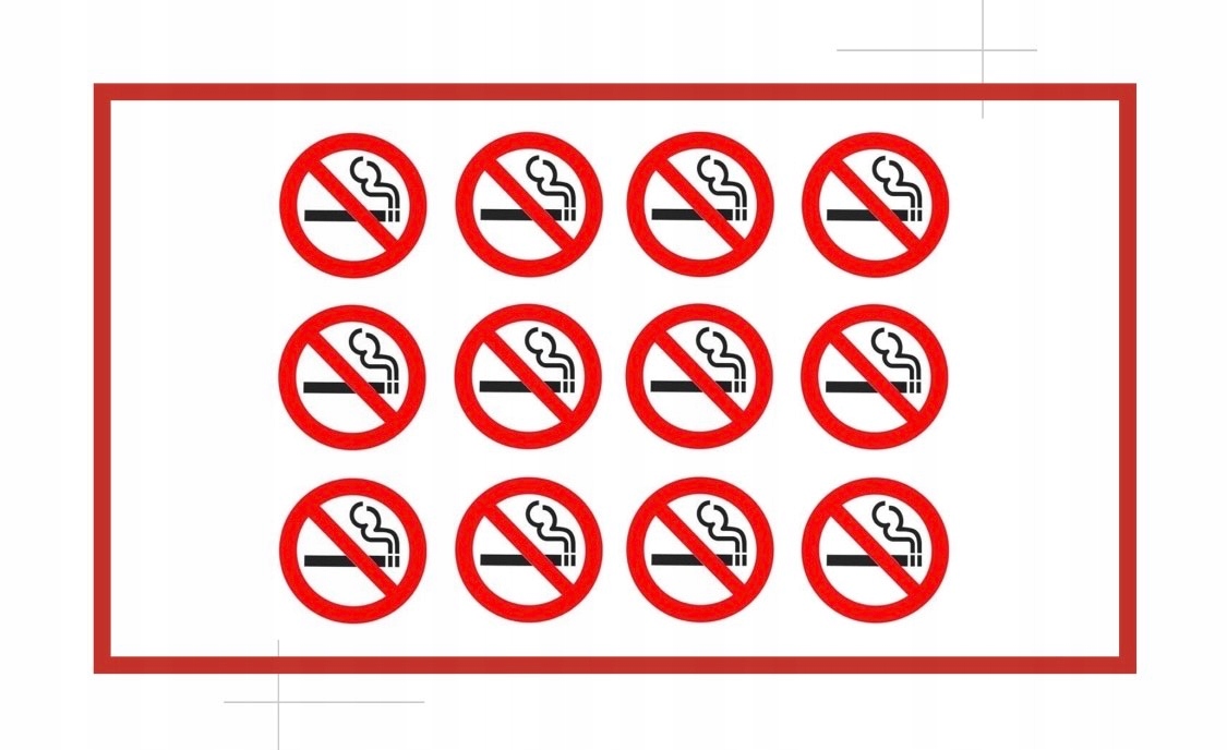 позначення місць в офісах, магазинах, складах, ресторанах, школах та в кожному просторі, де куріння заборонено. Наклейки можна використовувати як всередині, так і зовні.