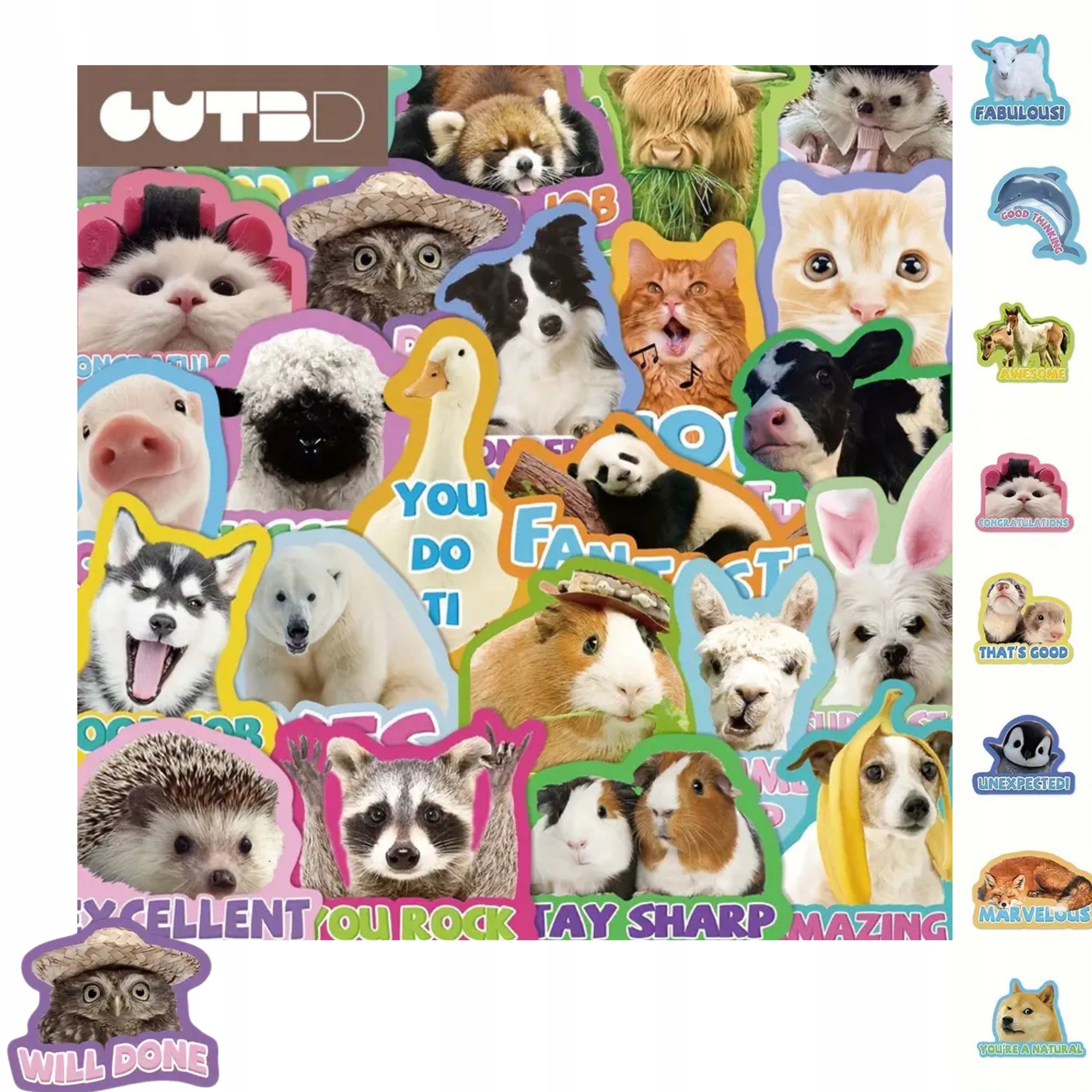Цей набір із 50 унікальних вінілових наклейок із милими тваринами та позитивними слоганами — ідеальний спосіб прикрасити ваші речі та покращити настрій щодня.