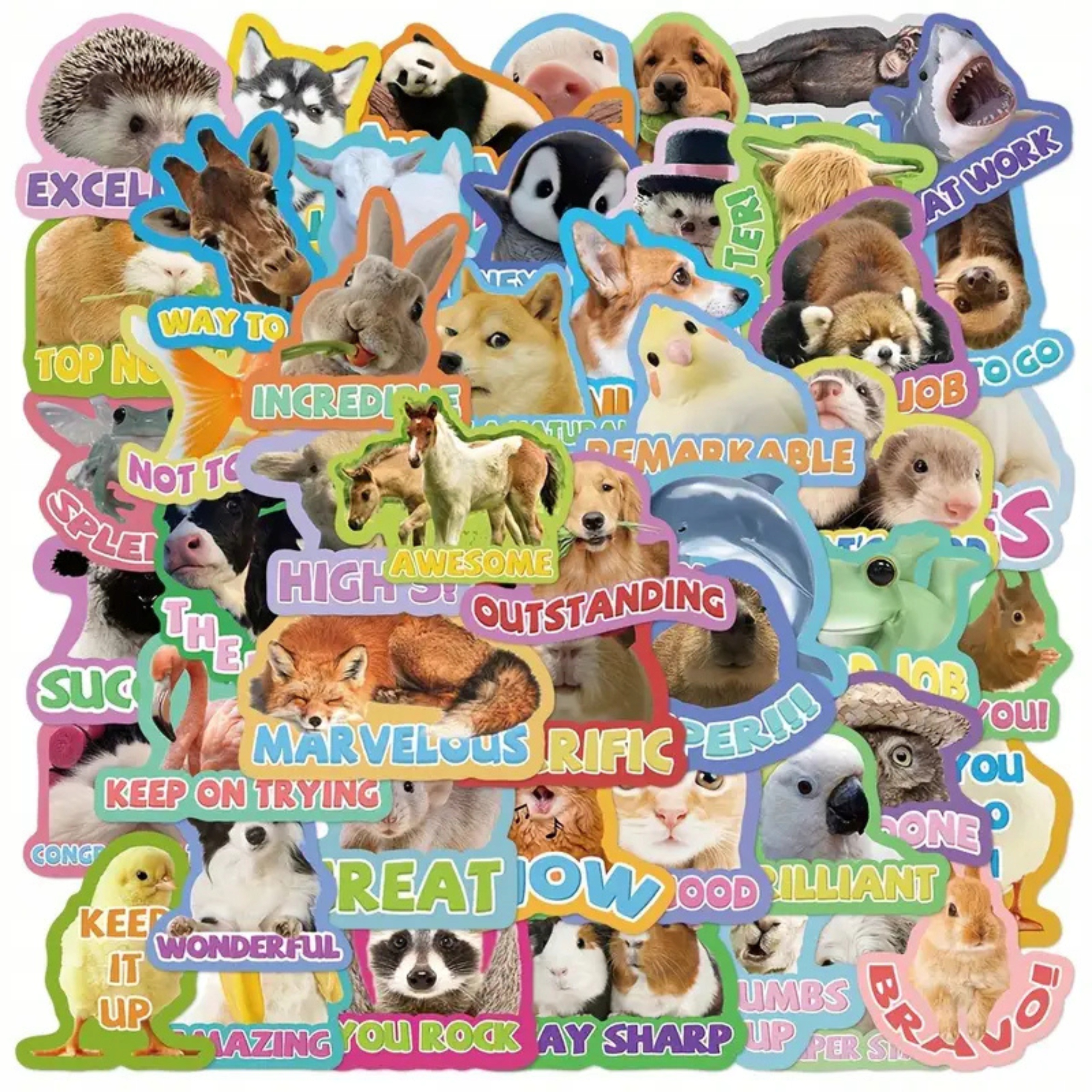 Мотиваційні вінілові наклейки - 50 штук різнокольорових тварин із гаслами!
