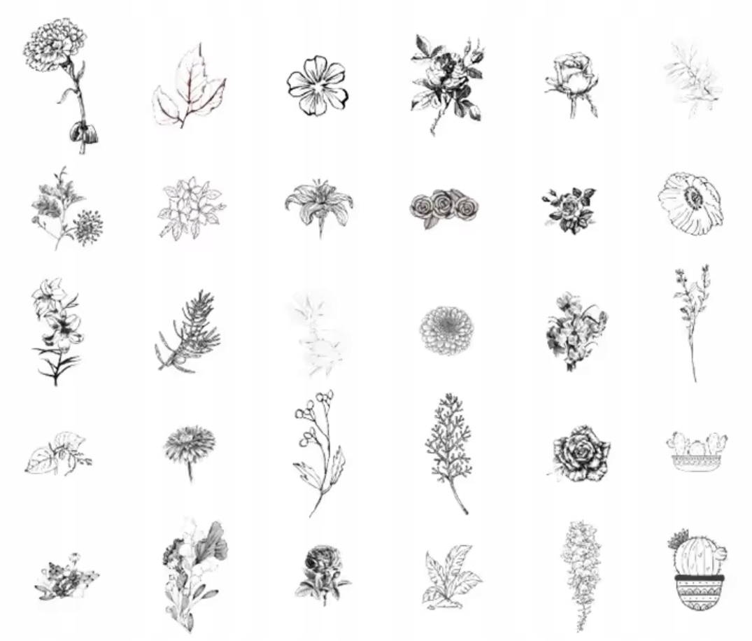НАЛІЙКИ ФОЛЬГИ ДЛЯ СКРАПБУКІНГУ 60 ШТ. ДЕКОРАТИВНІ КВІТИ РОСЛИНИ ЛИСТЯ