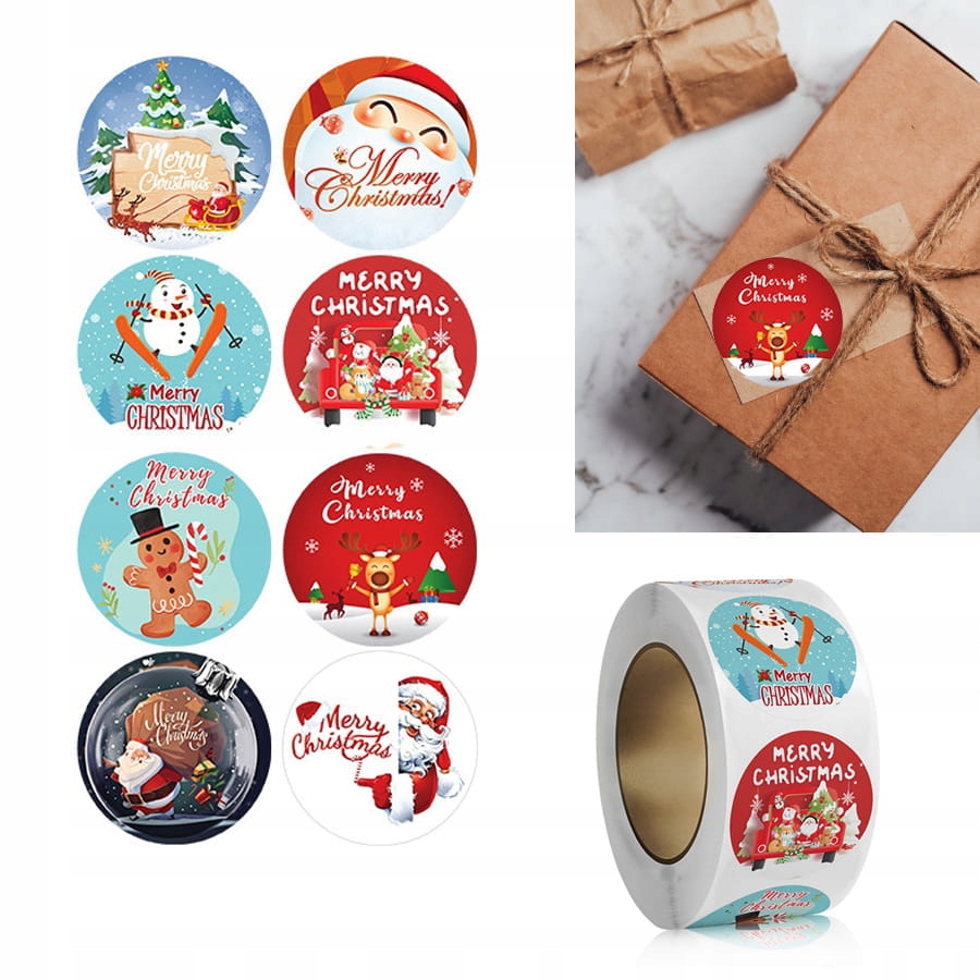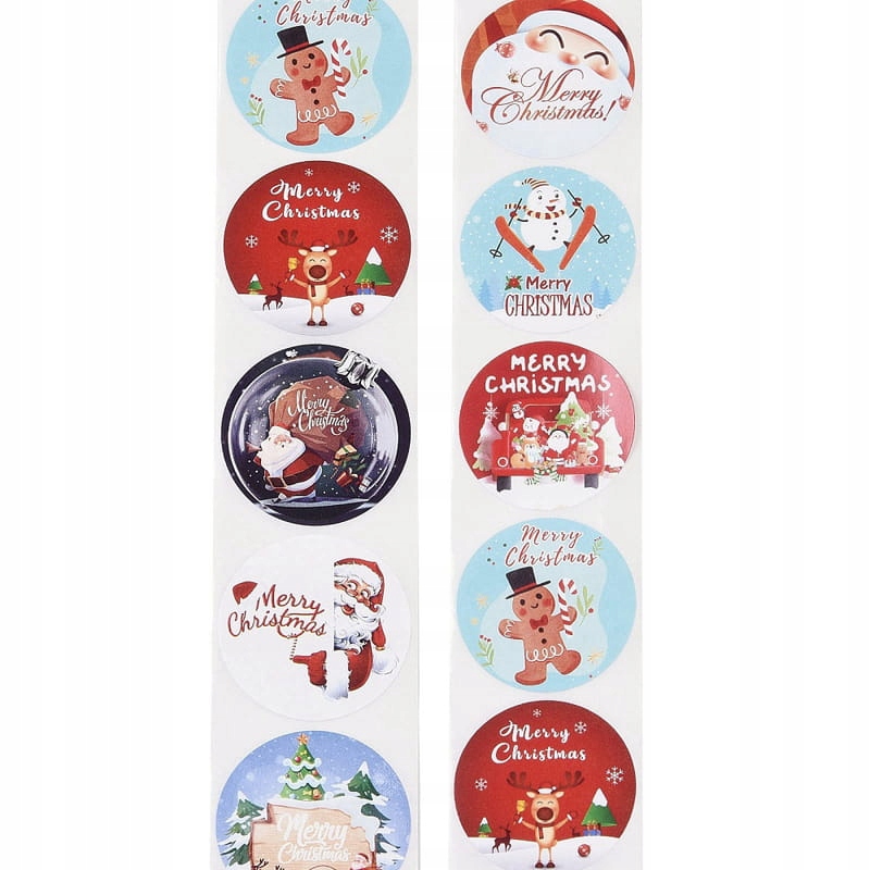Круглі самоклеючі, декоративні наклейки з паперу. Ідеальне доповнення до різдвяного подарунка для наклеювання на конверти, запрошення та вітальні листівки. Пакет містить один рулон, який містить приблизно 500 наклейок.