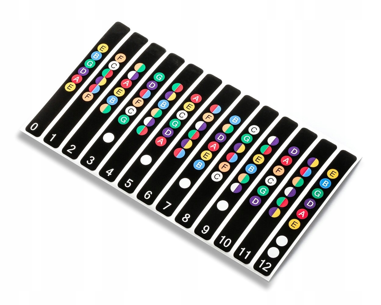 Набір із 13 наклейок на гриф (гриф) гітари, щоб навчання цьому інструменту було легким :) Наліпки з назвами звуків стануть у нагоді та допоможуть кожен учень гри на акустичній гітарі. Наклейка виконана на чорній основі, щоб було добре видно, і покрита захисним шаром, щоб служити учневі якомога довше.