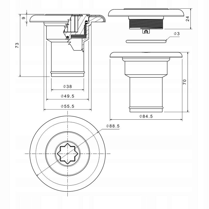 НАЛИВ У ВОДУ ЯХТОВИЙ 38мм ЗАКРИВАЄТЬСЯ НА КРИВОШИП КАБЕСТАНУ - NUOVA RADE