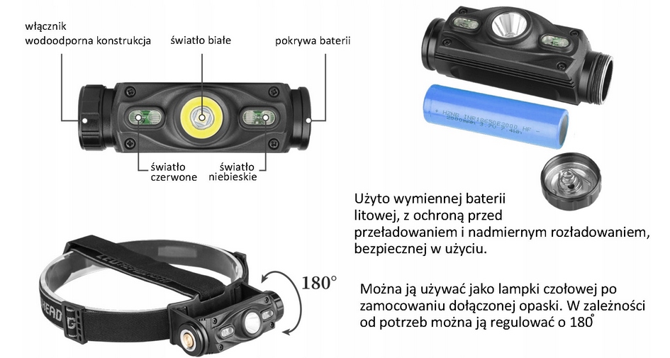Надзвичайно зручна, маленька, дуже легка фара, і в той же час міцний корпус містить сучасний, надзвичайно великий світлодіодний перетворювач COB. Великою перевагою ліхтарика є дуже широкий, рівномірно розсіяний світловий потік, створюваний сучасним діодом COB.
