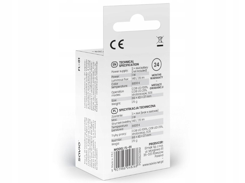 ⭐Налобний ліхтар FL-01 класичного чорного кольору легкий і міцний. Вага 25 г і невеликі розміри 66 х 43 х 27 мм дозволяють легко переносити.