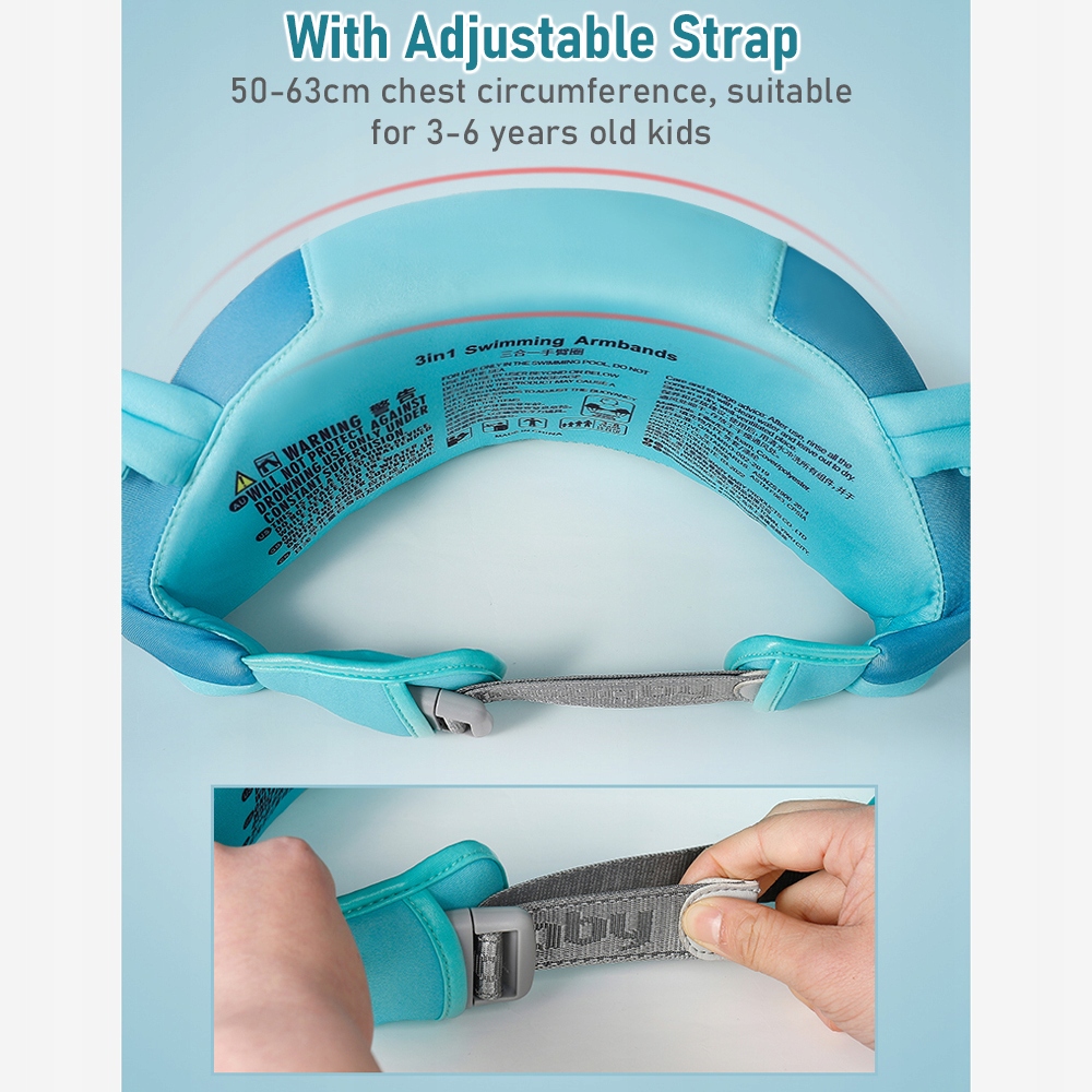 【Знімні нагрудні кільця та наручі】Кільце з кільцями та нарукавники знімні. Діти можуть використовувати клітку та руки разом або окремо відповідно до різного етапу навчання плаванню.