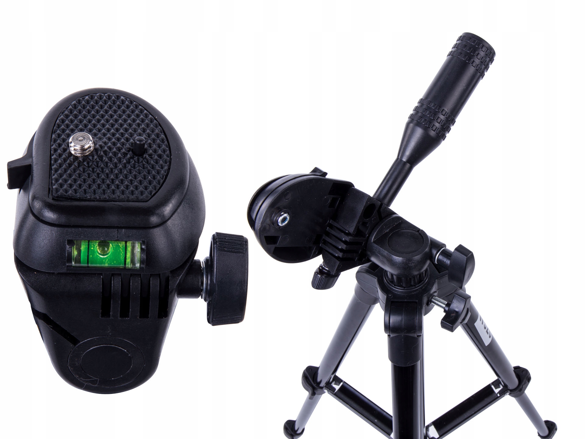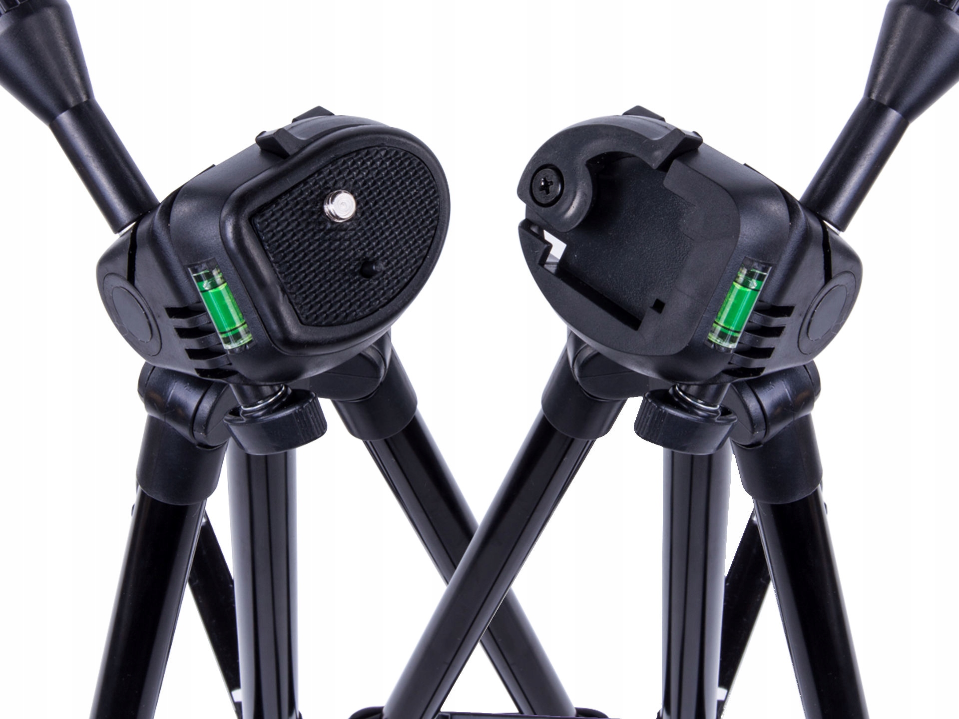 Верхня частина штатива — це тривимірна головка з рівнем (дозволяє точно вирівнювати рівень) і знімним швидким з’єднувачем зі стандартною різьбою та центруючим штифтом (швидкий з’єднувач можна швидко знімається за допомогою кліпси або постійно прикріплюється до камери). Підсідельний штир висувається та фіксується за допомогою ручки та плавно регулюється по всьому діапазону. Голову можна встановити в будь-якому положенні за допомогою ручки - додаткова функція фіксації на 90° дозволяє зручно фотографувати у вертикальному положенні.