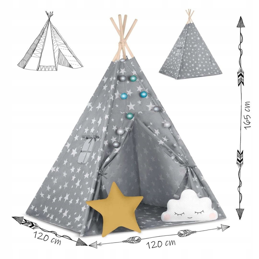 НАМЕТ ДИТЯЧИЙ TIPI З ПІДСВІТЛЮВАННЯМ NUKIDO - СІРИЙ З ЗІРОЧКАМИ