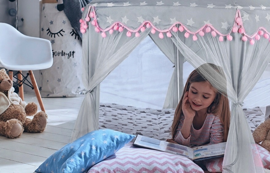 Намет для дітей — це чудовий спосіб творчо та творчо розважатися як вдома, так і на вулиці. Це стимулює уяву та дозволяє весело проводити час наодинці чи у великій групі, без вікових обмежень. Гарний намет у вигляді розкладного шестикутного палацу, який сподобається кожній маленькій принцесі. Красивий намет з навісом знайде своє місце в кімнаті, на терасі або в саду.Намет дуже великий, тому в ньому можуть перебувати декілька дітей одночасно.