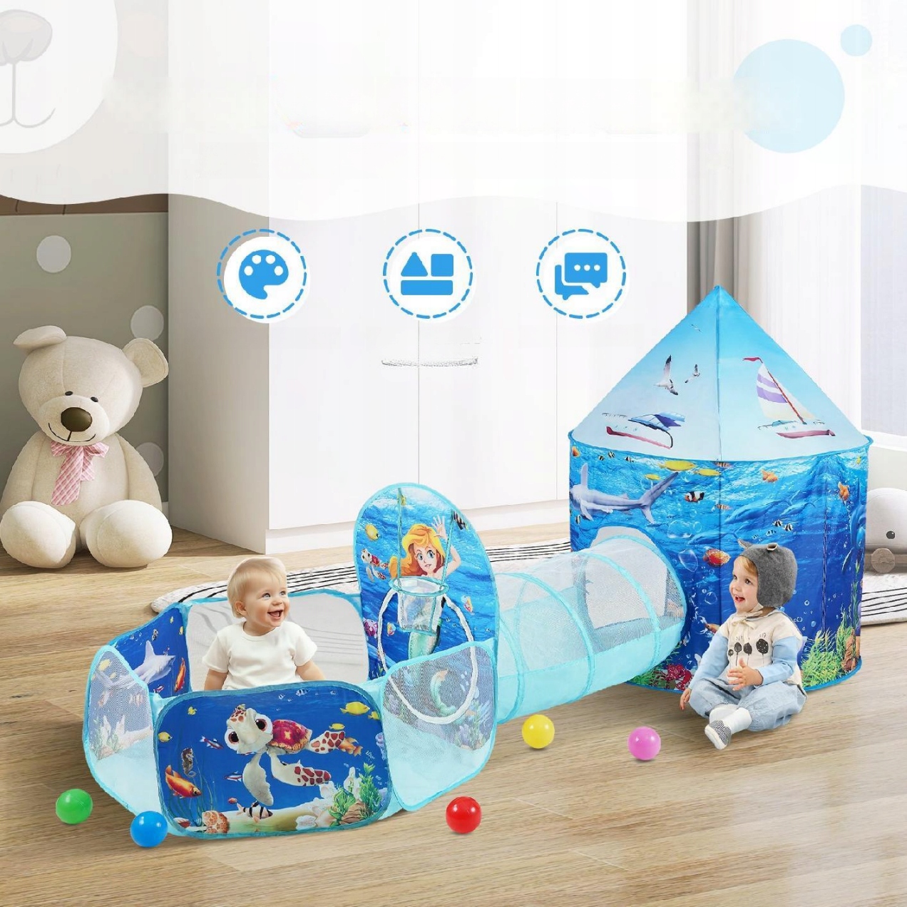 - ✅ просторий 3in1 - типі, тунель та будинок/басейн, пристосований до потреб дітей.