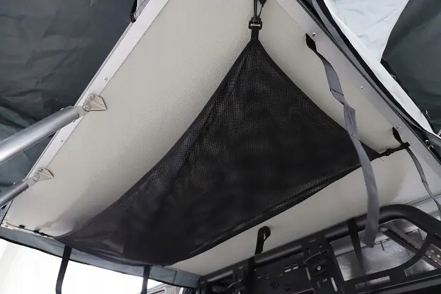 Один із найпрактичніших аксесуарів, які можна встановити в наметі на даху. Сітка кріпиться до відповідних тримачів прямо під підлогою біля входу в намет. Це дозволяє організувати непомітне та зручне місце для зберігання. Сфера його застосування залежить виключно від ваших потреб та ідей.