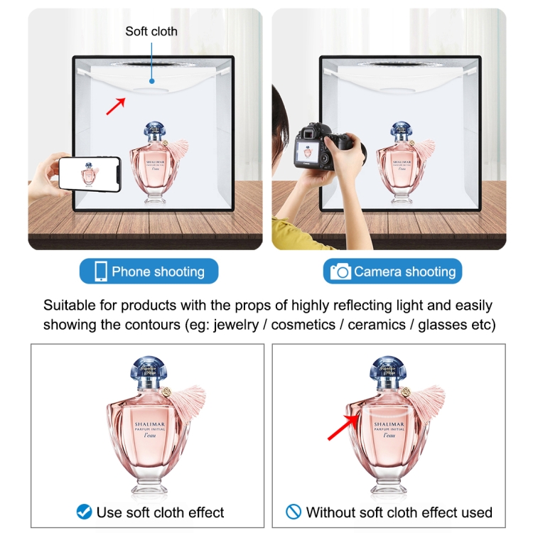 кнопки у верхній частині намету гладке регулювання яскравості освітлення , що дозволить відрегулювати світло до потреб фотографії. секунди,