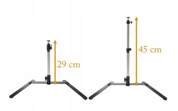 Різьба 1/4 дюйма b> дозволяє монтувати будь-яку камеру, а камера зі стандартним різьбовим входом дозволяє нахиляти стрижень як вперед, так і назад це стандартний 1/4" різьбовий вхід, який розміщується, наприклад, на більшому штативі. Висота штатива регулюється від 29 до 45 см.