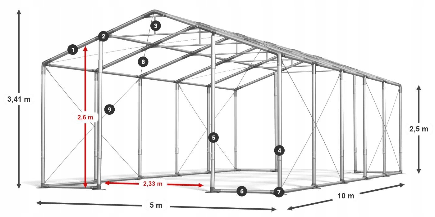 Намет складський 5х10 м [2,5 м] Гараж DAS 600 WP