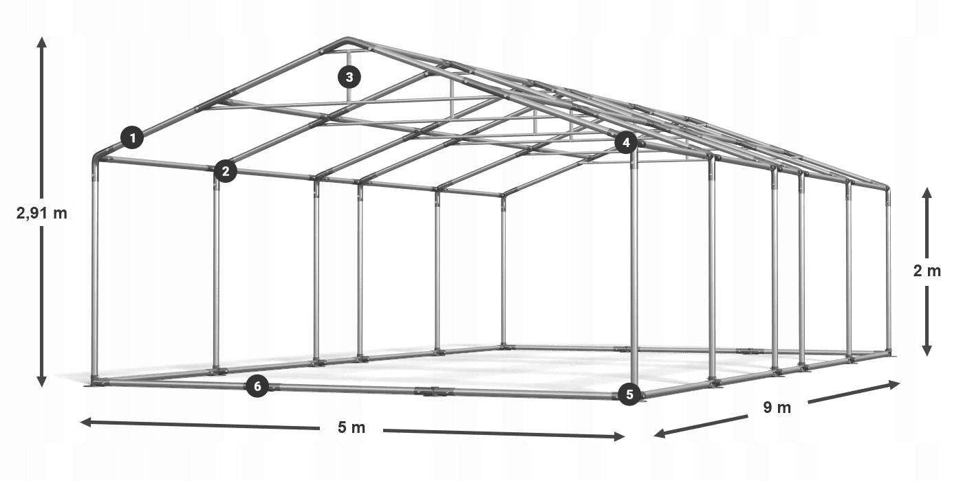 1 - Структурні труби fi 38 мм 2 - Структурні з'єднувачі fi 42 мм 3 - Посилена конструкція даху 4 - Міцні гвинти через 5 - Підніжжя fi 9 см 6 - Посилена конструкція підлоги