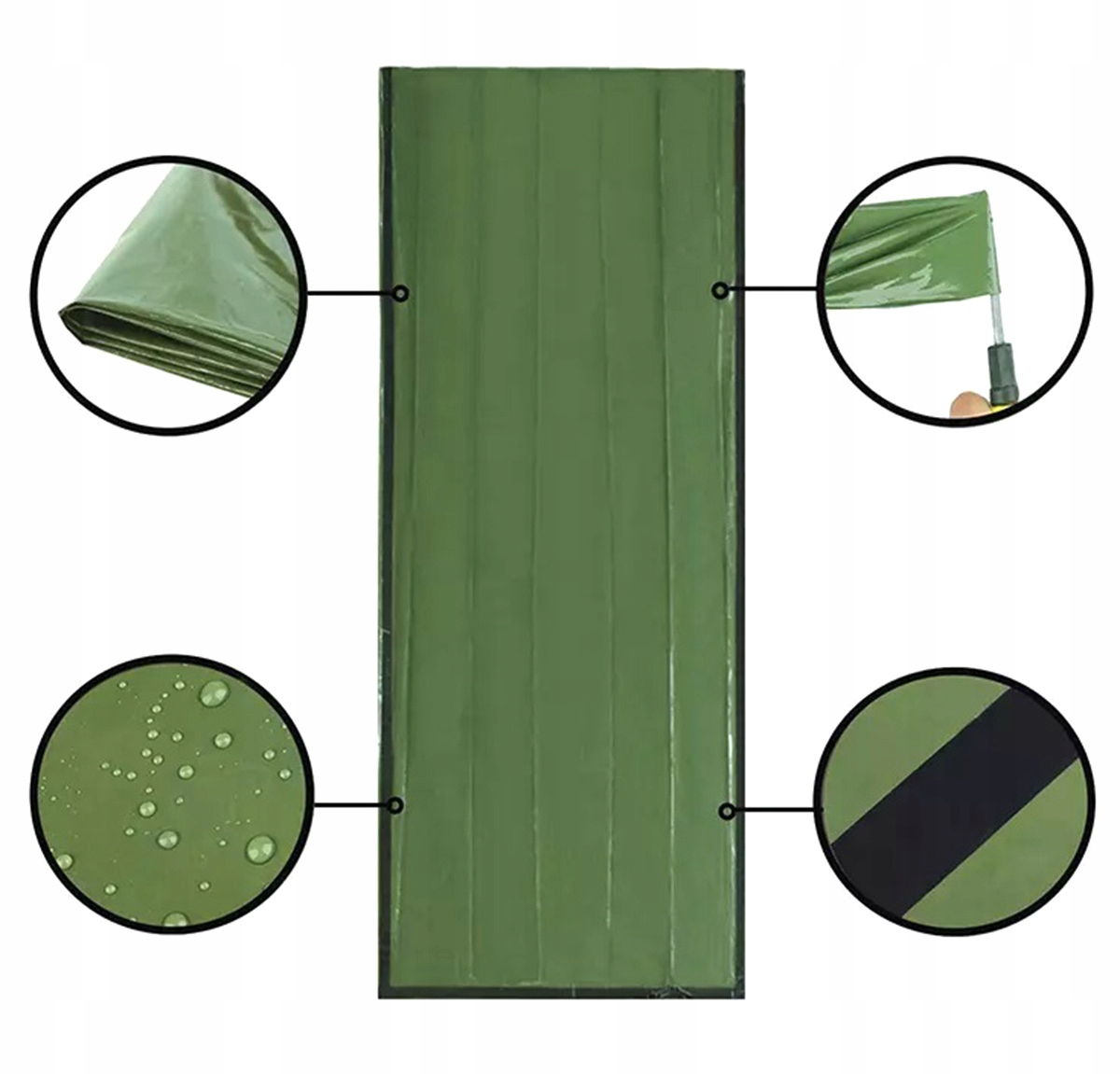 Складений рятувальний спальний мішок, виготовлений з тепла. Ідеальне рішення, яке використовується в туризмі, альпінізації чи порятунку. Використовуваний матеріал є водонепроникним, який ідеально ізолює від холоду, вітру та складних погодних умов. Запобігає організму організму під час екстремальної погоди. Компактний мішок дозволяє легко переміщувати, а WELT оснащений гучним свистом, який дозволить нам почути з великої відстані. Складений аварійний спальний спальний сон Сонний Сонний матеріал, який підтримує тепло.