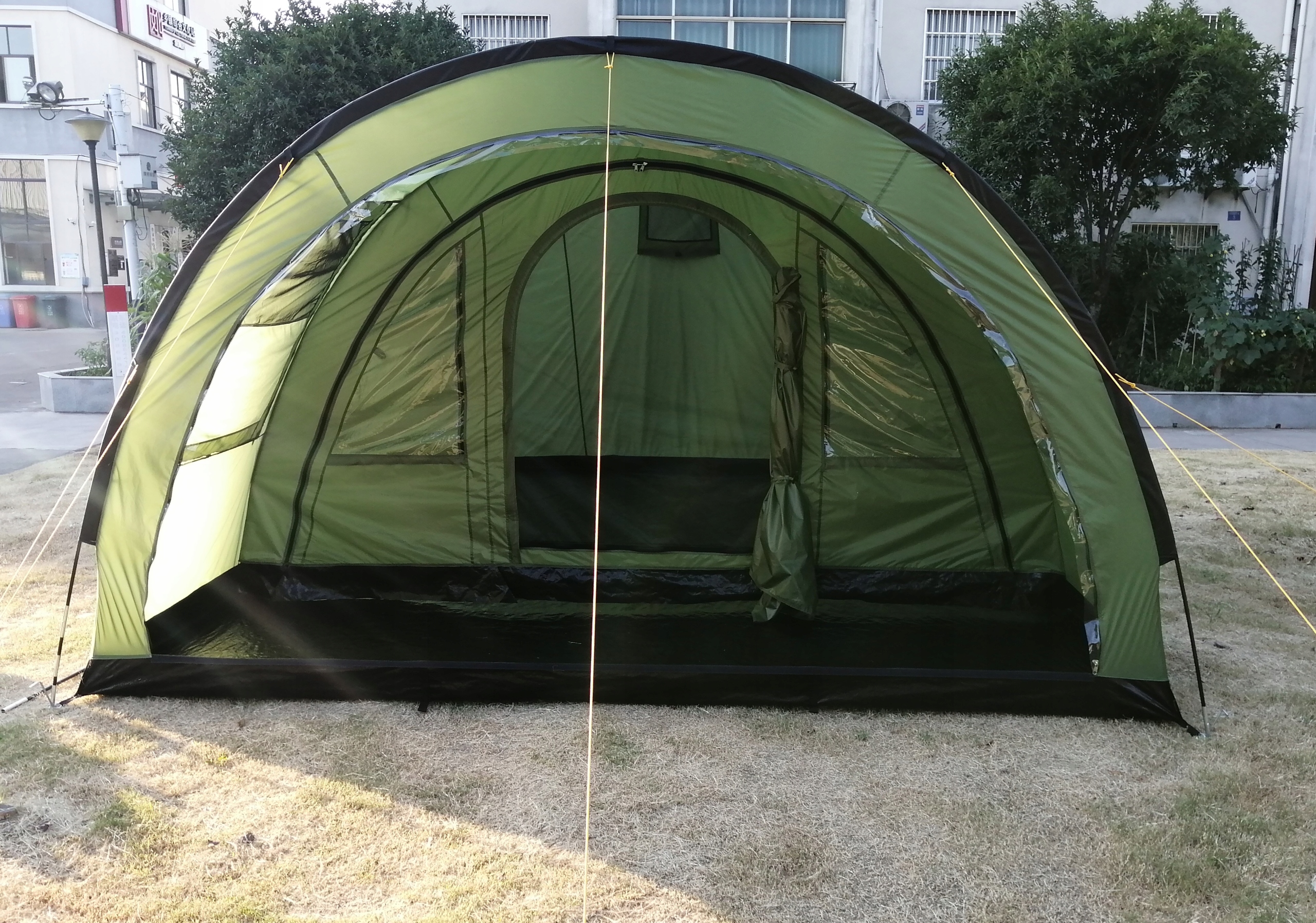 Кілька великих ПВХ вікон забезпечують адекватне світло. Численні вентиляційні отвори забезпечують правильну циркуляцію повітря всередині намету.