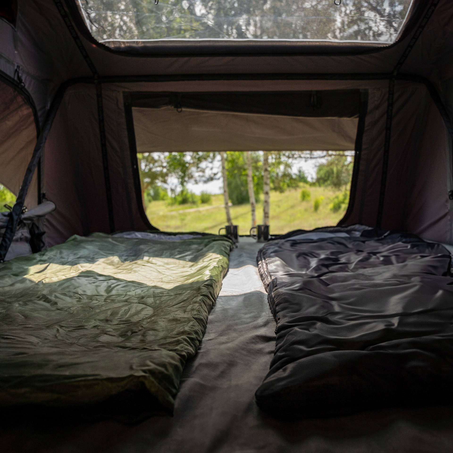 Інтер'єр намету на даху Hudson 140 забезпечує простір для комфортного відпочинку, пропонуючи матрац розміром 140 x 240 см. У ньому достатньо місця для двох людей, що забезпечує комфортний сон і достатній простір для ручної поклажі.