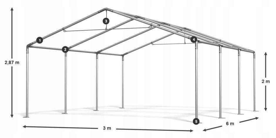1 - Дах PE (поліетилен) прибл. 240 г/м2 2 - шторка 3 - Міцні блискавки YKK b> на входах 4 - Змінні кришки 5 - Бічні стінки PE прибл м (поліетилен)прибл. 240 г/м2 6 - Проушини для кріплення брезенту
