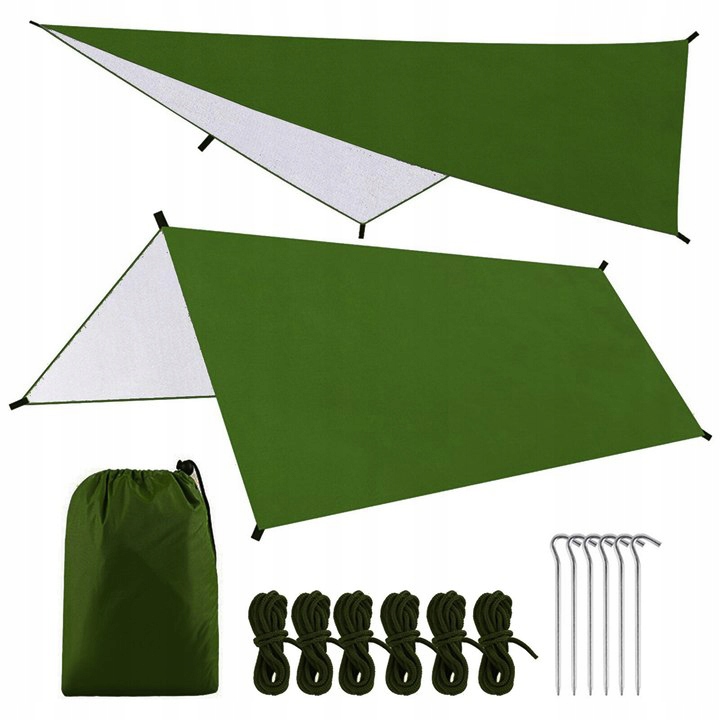 - Внутрішній шар срібла може ефективно блокувати більшість ультрафіолетових променів та запобігти опікам та тепловим ударом. Дощ не залишиться на ньому, кемпінг під дощем.