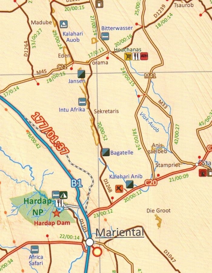 НАМІБІЯ ВОДОНЕПРОХОДНА АВТОМОБІЛЬНА ТУРИСТИЧНА КАРТА