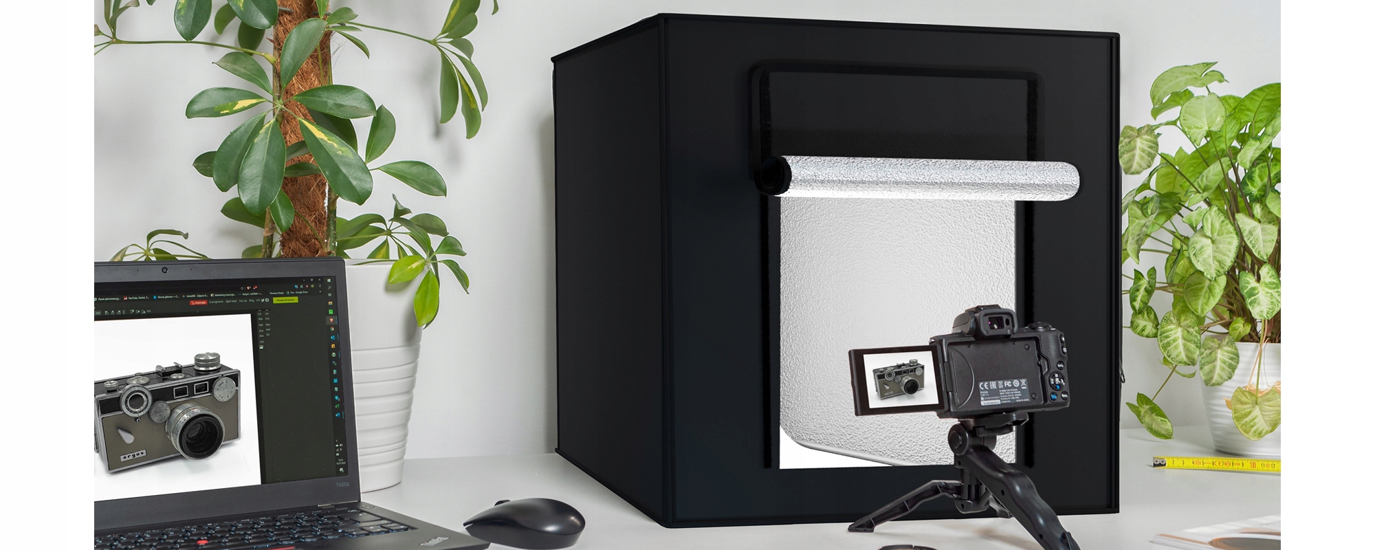 Безтіньовий намет Newell M40II це мобільна фотостудія, захована у формі портфеля. З його допомогою ви можете робити привабливі фотографії продуктів для онлайн-аукціонів і професійних каталогів. У набір входить набір фонів і власне світлодіодне освітлення.
