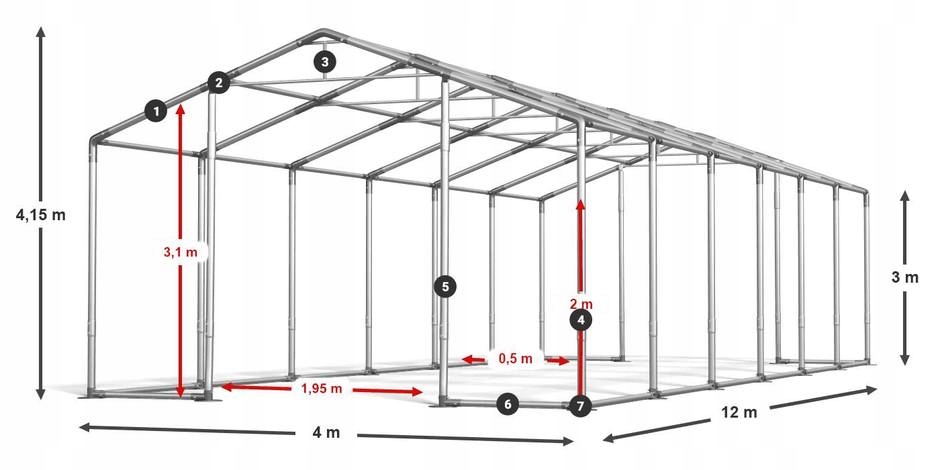 Namiot Przemysłowy 4x12m [3m] Budowlany DAS 600 W