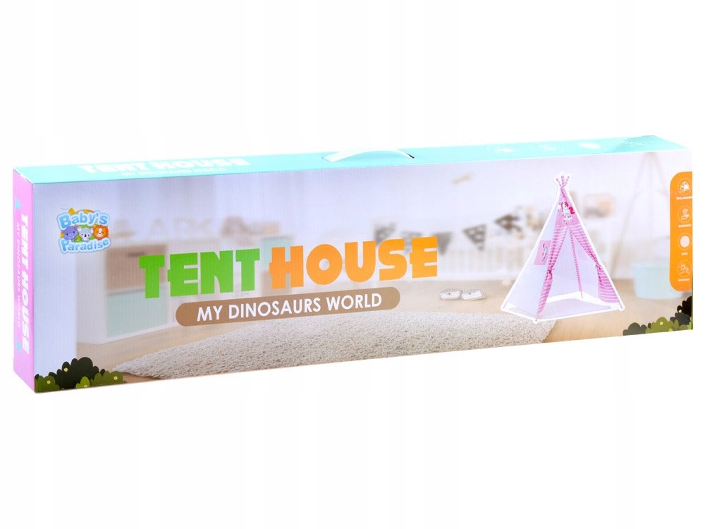 Намет типу тіпі з єдинорогом напевно сподобається кожній дівчині. Діти люблять володіти таємницями і таємницями, і такий намет стане ідеальним місцем для схованок і зберігання скарбів. Ігровий намет в кімнаті або саду виготовлений з матеріалу, який легко миється, а труби виготовлені з пластику. Вігвам можна поставити на будь-якому рівному місці, він добре підійде під час гри в кімнаті з ведмедиками, ляльками, машинками, а також чудово виглядатиме в саду. У наметі є мотузки для зав’язування боків, щоб ви могли легко входити та виходити з намету. Віконце, через яке можна визирнути, чи не пробирається хтось до намету, також дуже потрібне.