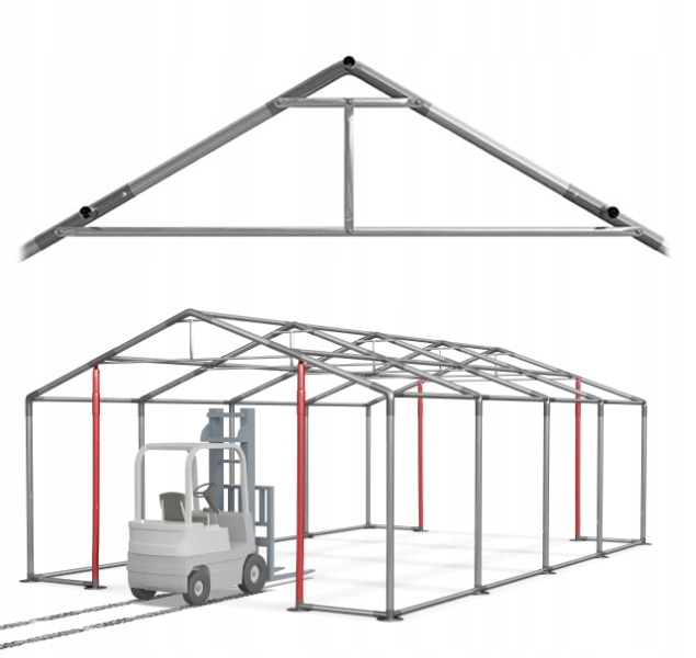 Конструкція оснащена додатковими товстими сталевими бічними та даховими натяжними канатами, скріпленими за допомогою стяжок. Це рішення додає довговічності та захищає намет від деформації. Це також додатковий захист від поганих погодних умов.