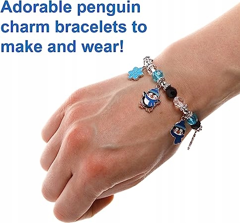 4 Діти різного віку люблять створювати власні, унікальні прикраси на дні народження або просто для розваги. Цей набір включає блискучі кристали, срібні розпірки, кулони емалі (пінгвіни), металеві підвіски сніжинок, пластикові кришталеві намистини, Нехай ваші діти відкриють власне почуття стилю завдяки цьому браслету з кулоном пінгвінів. Проявляйте творчість під час створення ювелірних виробів та створюйте власні прикраси.