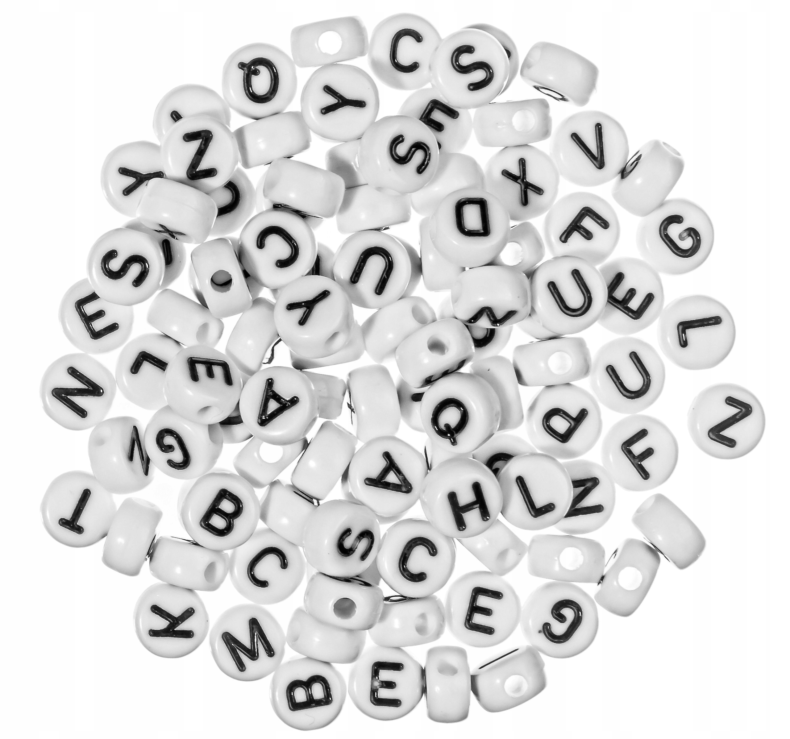 Letter beads - білі монети з чорними літерами, упаковані по 100 штук.