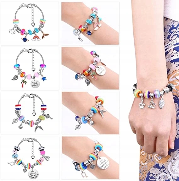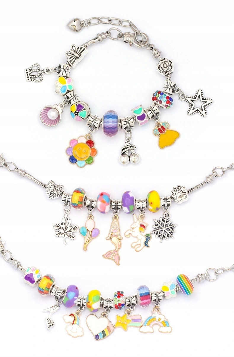 - ВЕЛИКИЙ НАБІР - набір із 64 елементів дозволить вашій дитині створювати неймовірно барвисті браслети різноманітної форми та з різними мотивами. У набір 3 браслети з намистинами та підвісками.