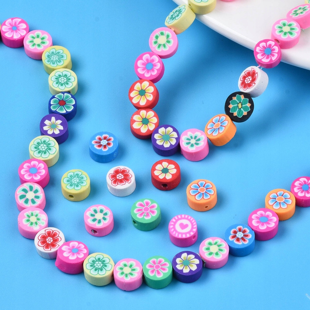 Намистини з полімерної глини ручної роботи 9-10х4-5 мм суміш 38шт/36см/нитка