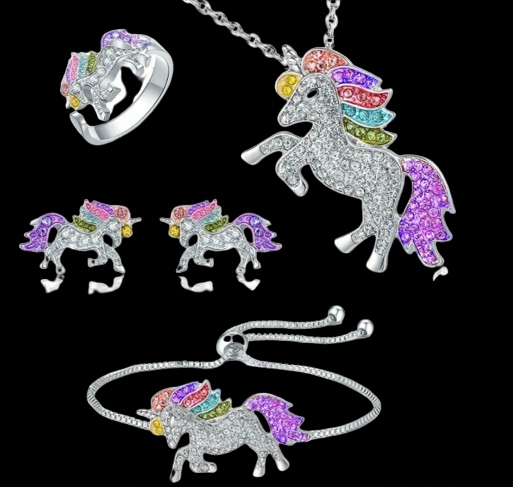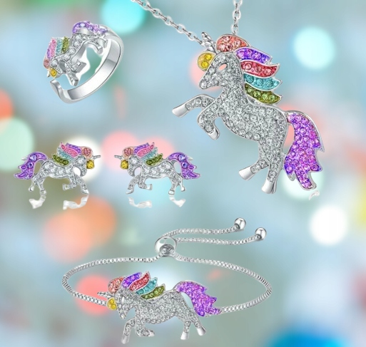 Набір із намиста, сережок, браслета, каблучки, набору з 4 штук єдинорога