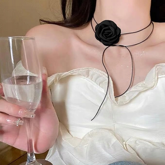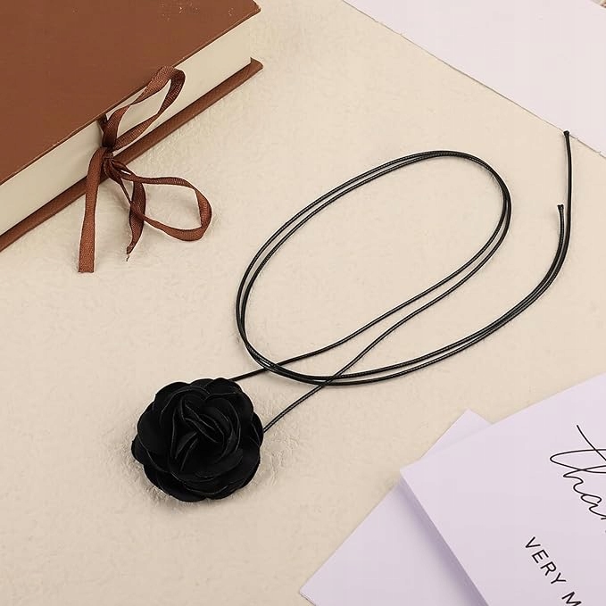 Модне намисто на зав'язках, чорна квітка на чорному ремінці, виготовлене з високоякісного матеріалу, який забезпечує довговічність, легкість і комфорт. Його також можна носити як браслет або як поясний ланцюжок. Ця елегантна і ніжна модель підійде для повсякденного носіння, вечірнього виходу або вечірки. Незалежно від того, носите ви його на шиї, плечі чи навіть на талії, цей унікальний елемент додасть елегантності та вишуканості будь-якому вбранню.