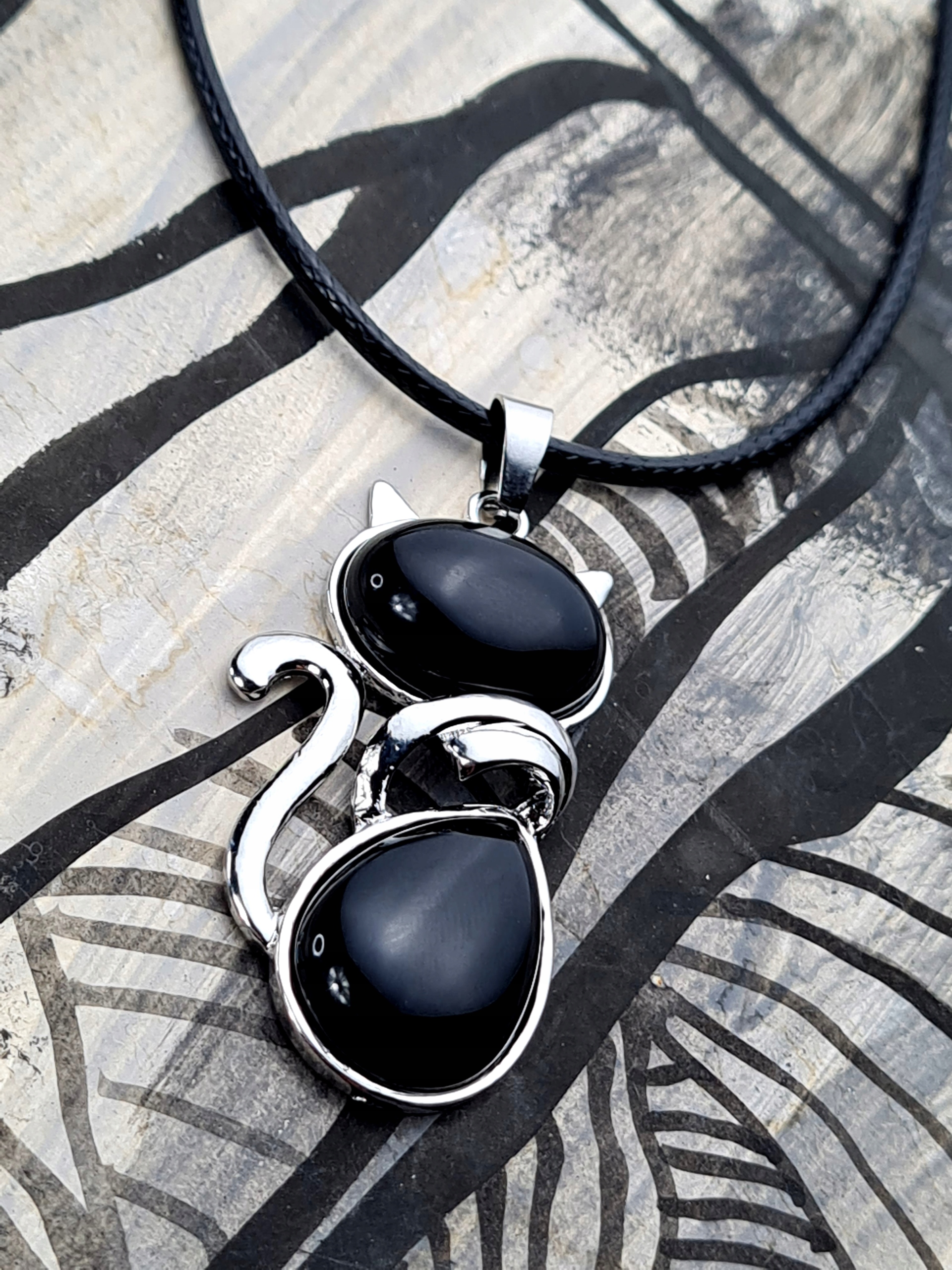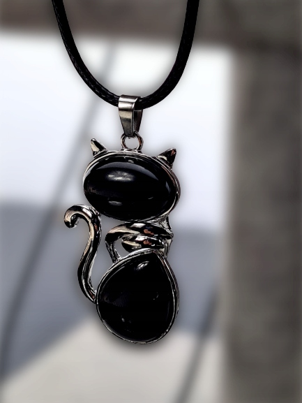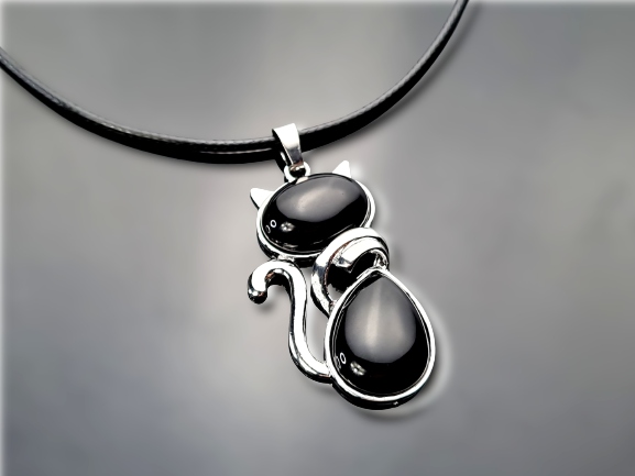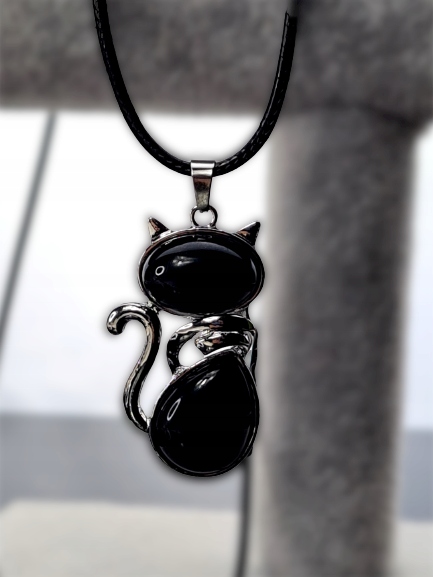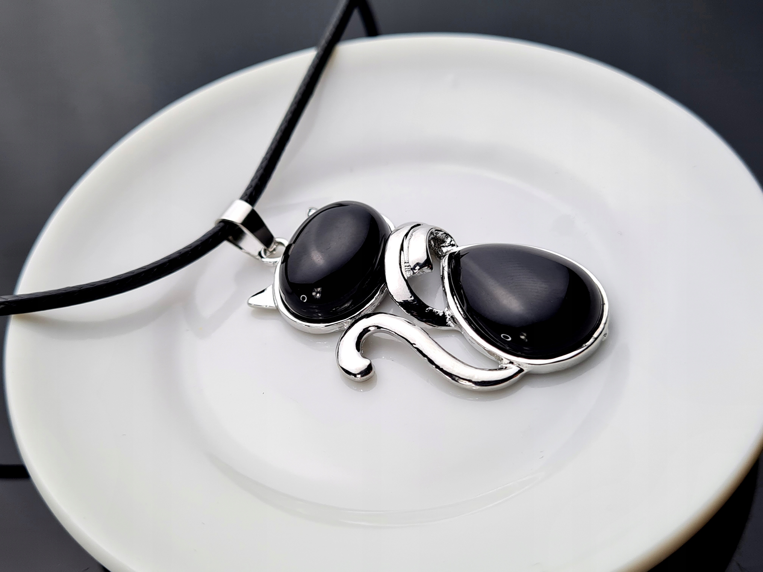 Намисто для дівчини з великим котячим котом Чорна Обіїдська подряпина