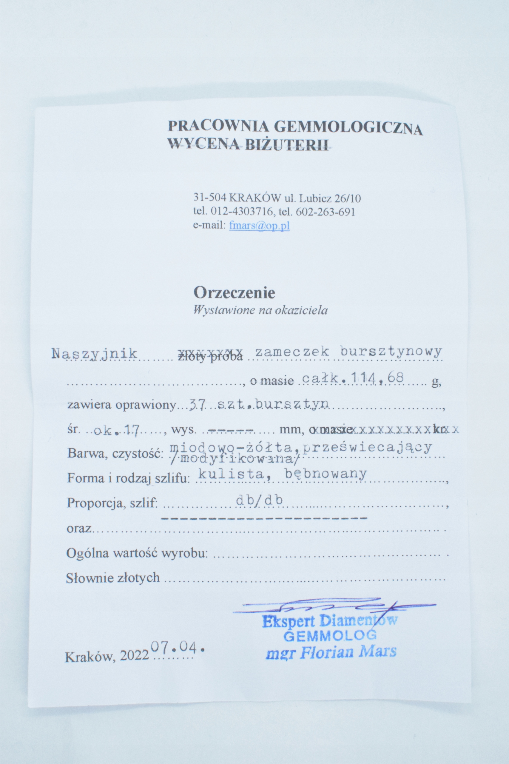 До намиста додається сертифікат ( фотографії).