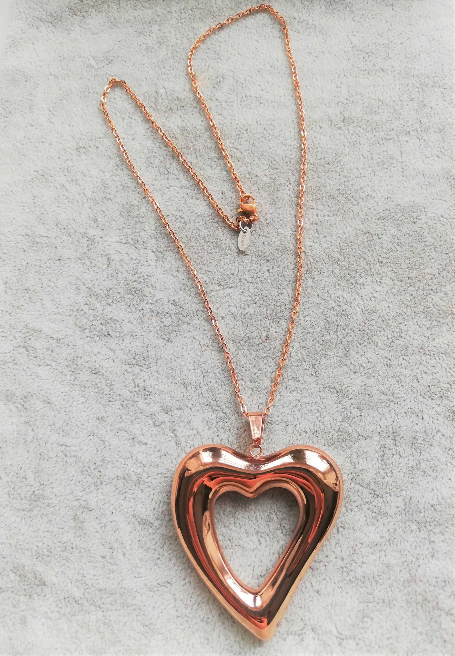 КОЛЬЄ З ДУВНИМ КОНТУРОМ СЕРЦЯ, РОЖЕВЕ ЗОЛОТО