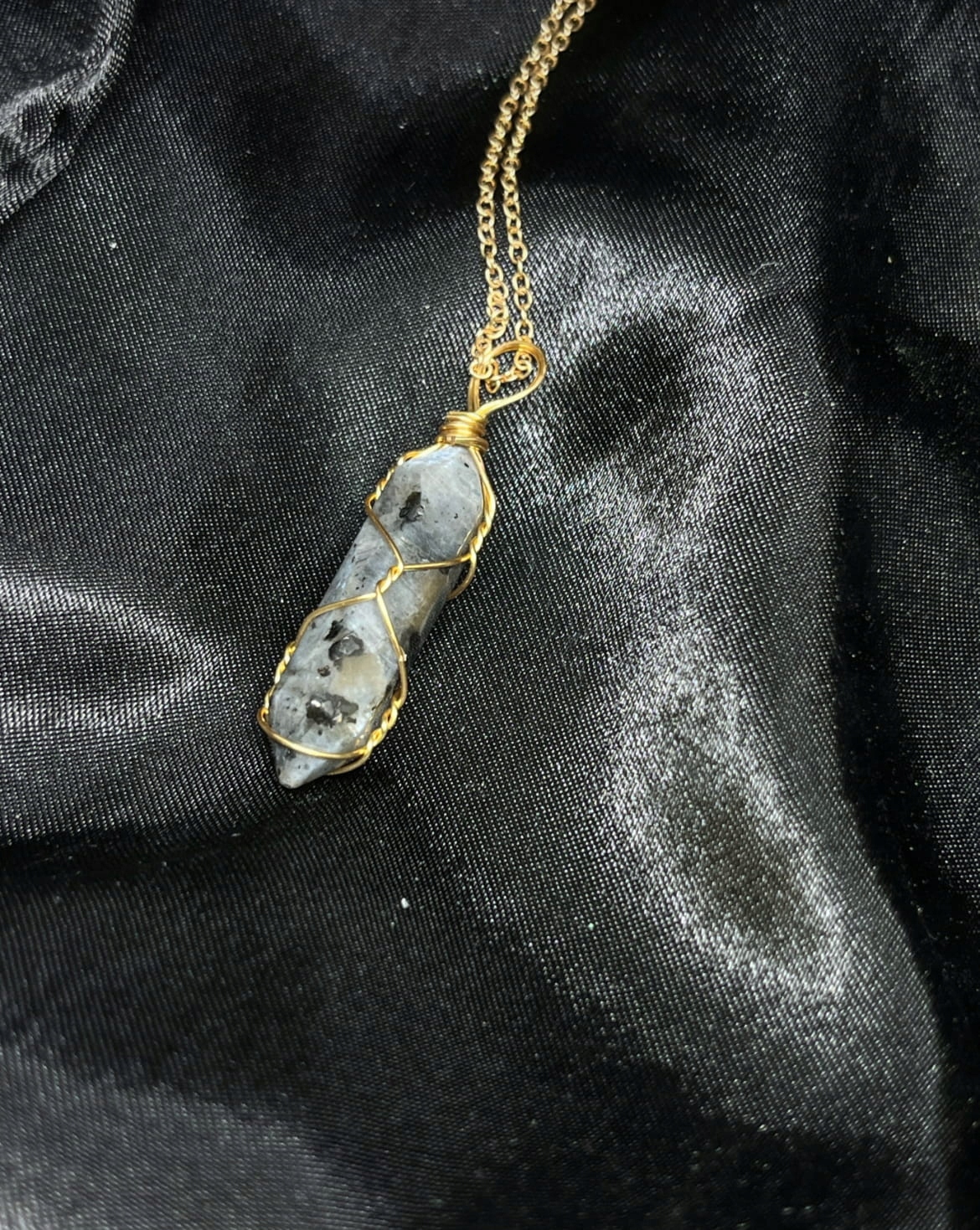 Намисто виготовлено з лабрадориту, каменю з характерними відблисками світла (лабрадоресценція).
