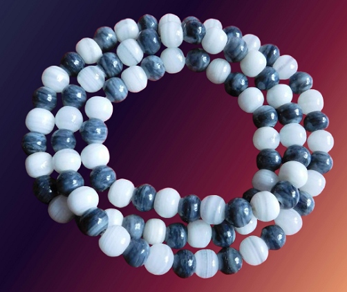 Намисто з натурального каменю темно -сірий та білий масивний