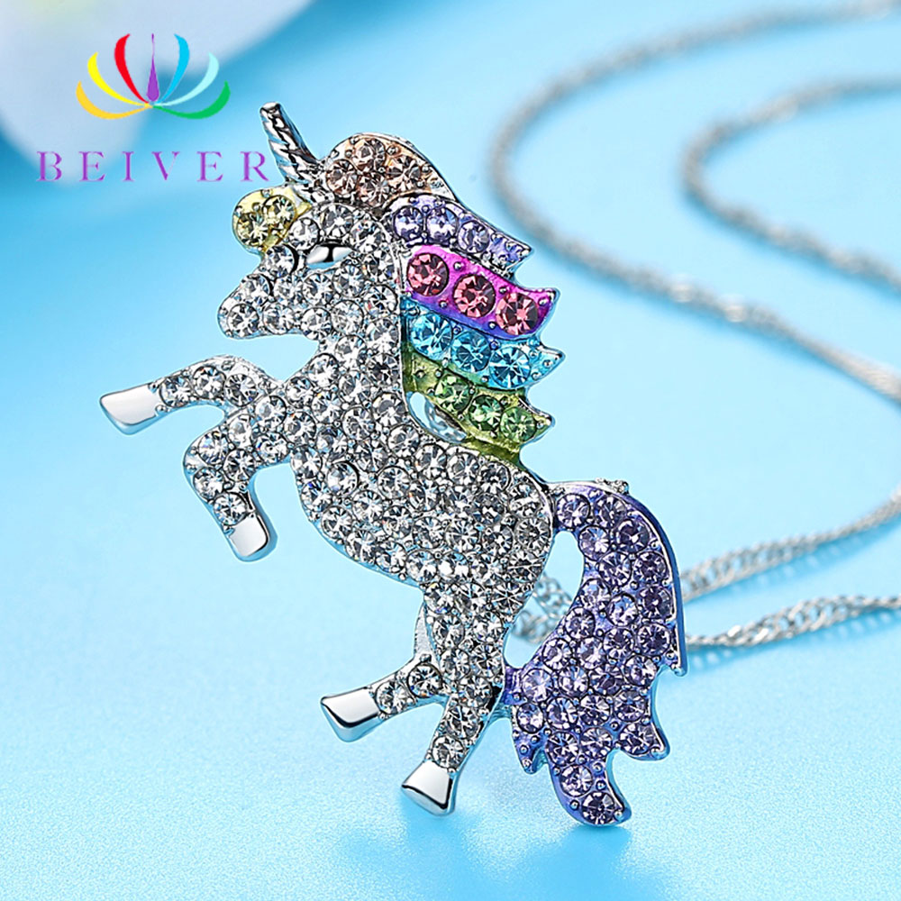 Намисто з підвіскою-єдиноріг різнокольоровим цирконом