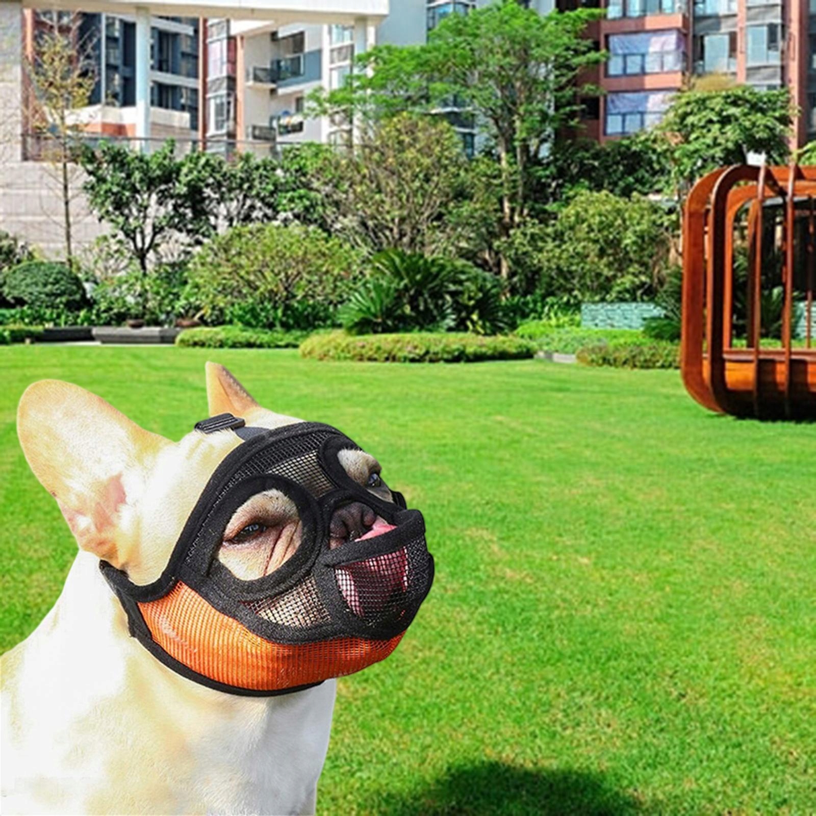 Намордники для собак з короткою мордою. Регульована намордник для захисту від висунення язика. Помаранчева L-футболка