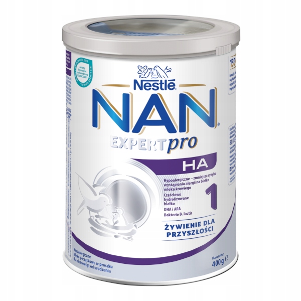 NAN EXPERTpro HA 1 — це гіпоалергенне дитяче молоко для здорових немовлят від народження, які мають підвищений ризик алергії на білок. коров'яче молоко (наприклад, якщо хтось із членів сім’ї страждає на алергію) і які з різних причин не можуть годувати грудьми. Немовлятам з відомою алергією на білок коров'ячого молока не можна годувати NAN EXPERTpro HA 1. Введення в раціон дитини іншої молочної суміші або коров'ячого молока має здійснюватися під наглядом лікаря. NAN EXPERTpro HA 1 забезпечує вашу дитину всіма поживними речовинами.