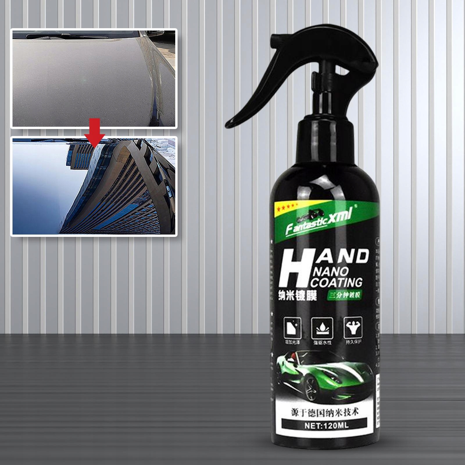 Description: Nano spray coating: by creating a layer of coating, make your car be clear as new environmentally friendly nanomaterials restore paint to the factory state protection: the coating can reduce and avoid scratches and damage to varnish, which improves the hardness of the surface of the car self -cleaning: with the effect of Lotos leaves after coating, improves self -cleaning and hydrophobic Feature: Resistance to high temperature, no signs of Покриття, покриття ефективно протидіє проблемам з окислювальним знебарвленням і робить автомобільний лак яскравішим: дозування кожне застосування становить близько 60 мл-80 мл, безпосередньо розпилюйте тонким шаром автомобіля, а потім рівномірно протріть рушником і зачекайте близько 3 хвилин, щоб висохнути