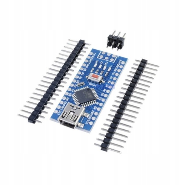 Модуль NANO V3.0 на основі мікроконтролера ATmega328. Його можна живити від міні-порту USB і подавати напругу 5 В у стабілізованому режимі або 7–12 В у нестабілізованому режимі. Система працює з тактовою частотою 16 МГц.