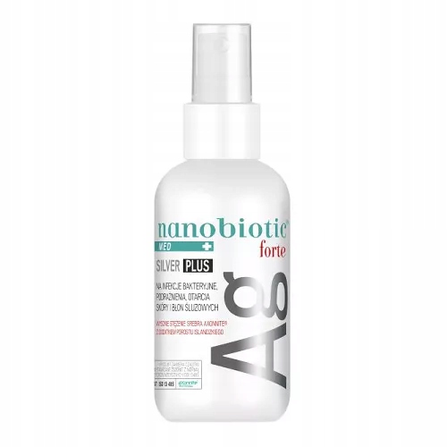 Медичний засіб Nanobiotic® Silver Plus Forte сприяє лікуванню ран, опіків, травм і пролежнів. Він сприяє лікуванню всіх інфекцій і подразнень, а також у разі запалень і алергічних змін шкіри і слизових оболонок. Срібний шар aXonnite®, що залишається на шкірі, забезпечує ефективний антибактеріальний захист. Nanobiotic® Silver Plus Forte очищає та захищає шкіру в місцях роздратування.