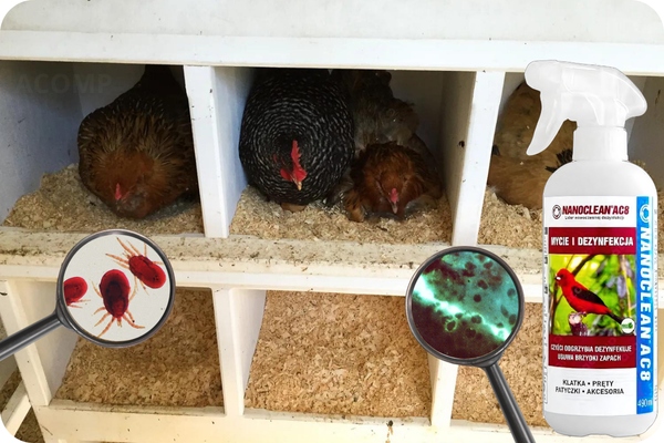 NANOCLEAN®AC8 Home BIRDS - це біоцидний продукт без запаху. Дезінфікує та дезінфікує поверхні, стрижні, палички та нейтралізує інтенсивні запахи екскрементів, що вбираються в елементи та закутки. і щілини пташиної оселі. Ефективно видаляє цвіль, запеклися та засохлі кали, очищає годівниці для їжі та води, дезінфікує простір, забезпечуючи здорове середовище. Дезінфекція препаратом допомагає видалити з приміщення такі збудники, як бактерії, віруси, грибки та паразити. Викликані ними захворювання швидко поширюються в закритому середовищі, що може призвести навіть до загибелі птиці. Препарат в один крок 5 в 1 - ОЧИЩАЄ, ОВІЖЖАЄ, ВИДАЛЯЄ ГРИБКИ, ДЕЗІНФІКУЄ та ЗАХИЩАЄ, що зменшує роботу, витрати та гарантує найвищу рівень дезінфекції та протигрибкової ефективності. Біоцидний ефект забезпечує тривалу дезінфекцію, що надзвичайно позитивно впливає на самопочуття птахів. У складних випадках, таких як курчавка, аспергільоз, пситакоз, варто продезінфікувати все, з чим птах контактує, щоб знищити джерело та причину.