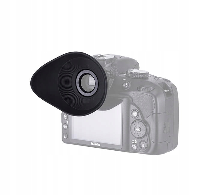 Великий наочник, створений для усунення проблеми потрапляння світла у видошукач збоку. Завдяки м’якій гумі амбушюри можуть успішно використовувати люди, які носять окуляри, і водночас захищає їх від подряпин. Мушлю можна використовувати як правим, так і лівим оком - це дозволяє функція повороту на 360 градусів. Крім того, навушник також функціональний під час зйомки у вертикальній орієнтації.