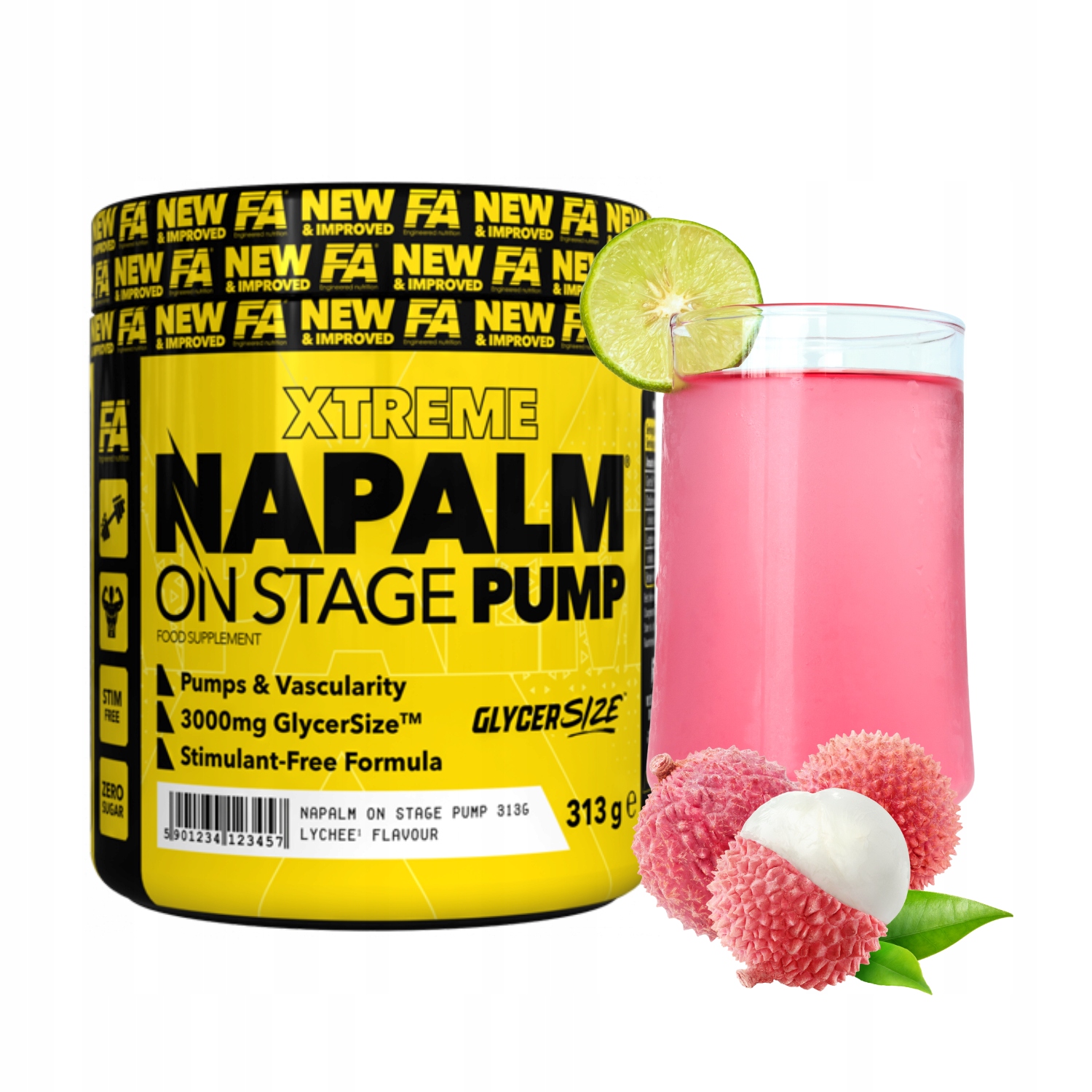 NAPALM On Stage Pump. Дієтична добавка.Містить підсолоджувачі. Формула перед тренуванням, що містить запатентовану форму гліцерину - GlycerSize™, цитрулін, L-аргінін і бетаїн. Продукт рекомендований для фізично активних дорослих і спортсменів.