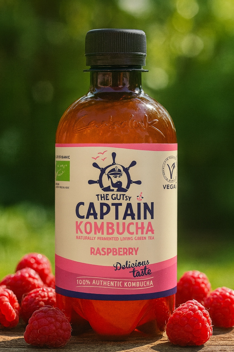 Captain Kombucha Raspberry - чайний гриб, створений за традиційним китайським рецептом. Для його виробництва використовується найякісніший зелений чай і тростинний цукор. Процес бродіння чайного гриба здійснюється за високих гігієнічних умов у професійній компанії з найвищими біотехнологічними стандартами.